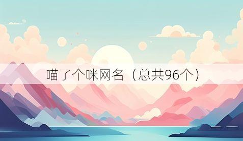 嘿,宝子们!今天咱就来唠唠那些超有趣的网名,网名就像是咱在网络世界的一个小标签,有个独特的网名那可老重要了,咱先从跟“喵了个咪”风格有点像的网名说起哈。