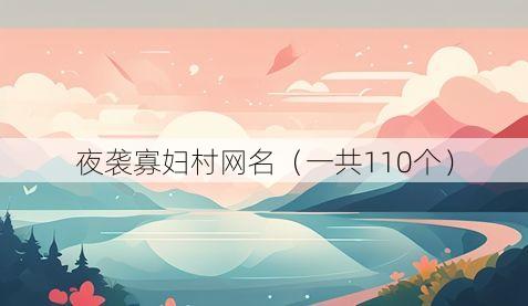 嘿,你有没有想过网名就像是咱们在网络世界里的一张特别名片呢?一个有趣、独特的网名能让人一下子就记住你,就像“夜袭寡妇村”这种网名,独特又有点神秘,今天我就给大家分享一波超酷的网名,各式各样任你挑!