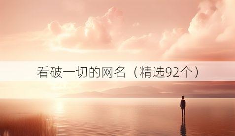 嘿,你是不是在找一个超级酷、能体现看破一切感觉的网名呀?那你可来对地方啦!今天我就给你分享一大堆这样的网名,保准有你喜欢的。