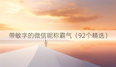 嘿,各位小伙伴!想找那种带敏字还特别霸气的微信昵称不?咱这就来瞧瞧,下面给大伙搜罗了92个带符号的超酷网名,个个都有个性,绝对能让你在朋友圈里脱颖而出!