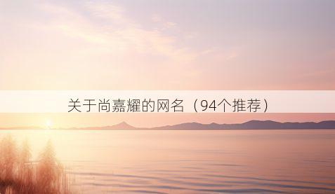 尚嘉耀,一个独特的名字,仿佛蕴含着无尽的光芒与魅力,围绕它衍生出的网名,更是丰富多彩。