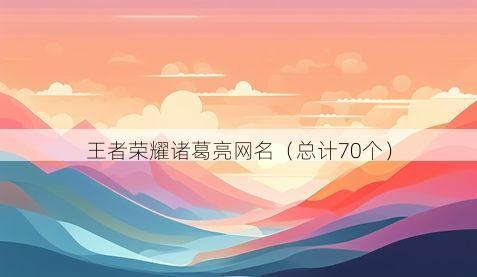王者荣耀诸葛亮网名(总计70个)
