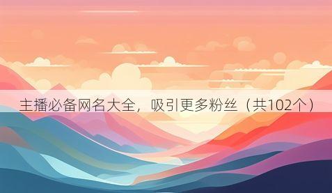 想让你的主播之路人气爆棚?那网名可得好好琢磨琢磨!一个亮眼的网名能瞬间抓住粉丝的心,下面给大伙精心准备了102个超酷且不带符号的网名,绝对能让你在主播圈脱颖而出,快来挑挑有没有你的心头好~