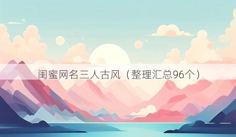 嘿,你有没有想过,如果和闺蜜三人一起取个超有韵味的古风网名,那该多有趣呀!每次喊出彼此的网名,都仿佛能穿越到那个诗意盎然的古代世界呢,下面就来看看这些精心准备的古风网名吧,相信总有一款能戳中你的心。