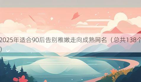 嘿,90后的小伙伴们!2025年啦,咱们也该跟过去的稚嫩说拜拜,大步迈向成熟咯,网名作为咱们在网络世界的一张名片,也得跟上这成长的步伐呀,下面就给大伙搜罗了138个适合咱们90后在2025年告别稚嫩走向成熟的带符号网名,快来看看有没有合你心意的~